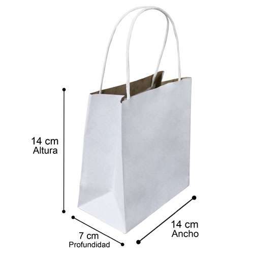 Bolsa papel kraft color Blanco de 14x14x7 cm